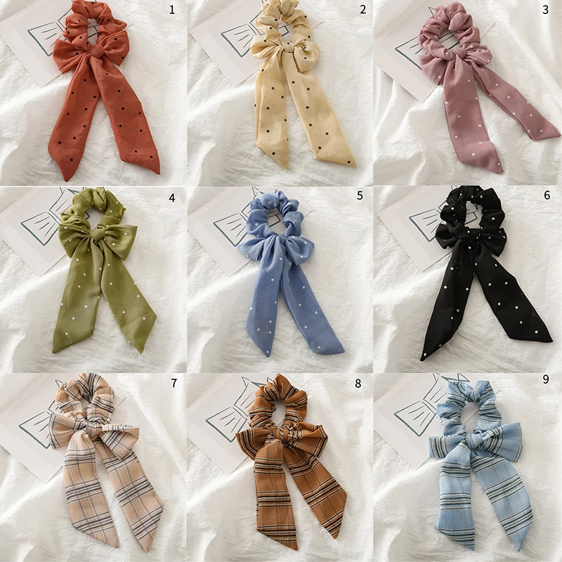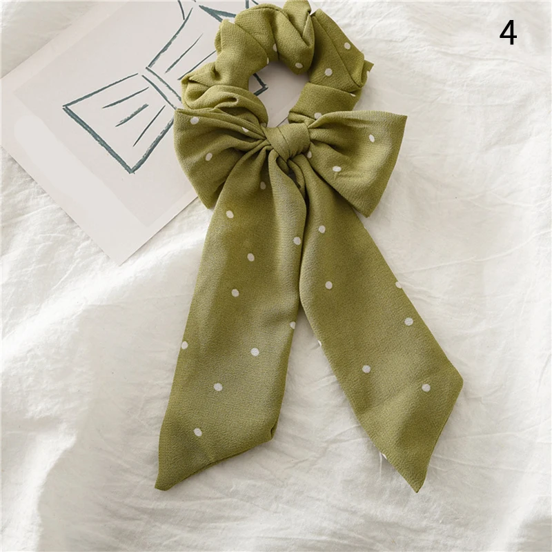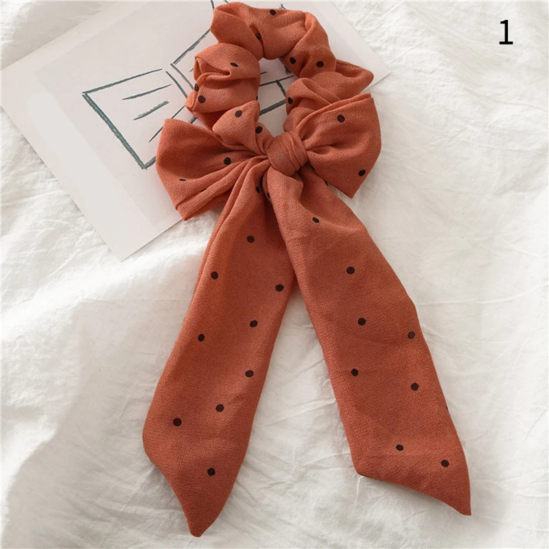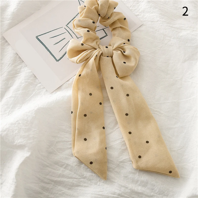 Резинка для волос женская, шифоновая, в мелкий горошек, в полоску, с цветочным принтом, с завязанным бантом, лето, эластичная резинка для волос