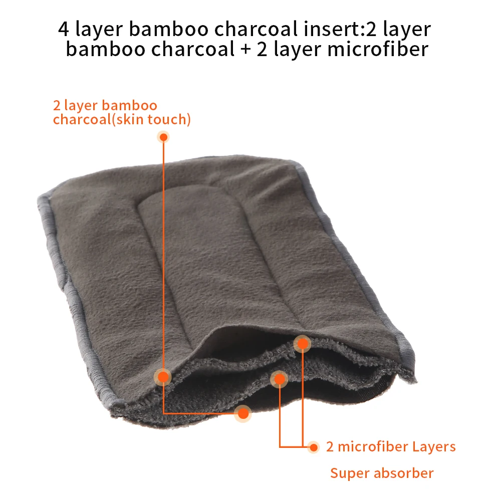 4 слоя бамбуковый угольный вкладыш: 2 слоя бамбукового угля снаружи + 2 слоя микрофибры внутри