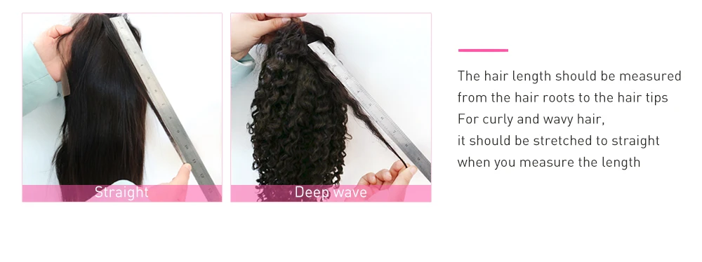 The hair length listed on website is stretched length. Curly and wavy hairs will be shorter on look than straight hair because they are made of straight hairs. When measuring the hair length, make sure you stretch the hair straight and measure it from the roots to the end. Please noted that the straight BOB hair is a bit shorter than normal straight wig because we need to cut the hair ends to achieve the perfect look.