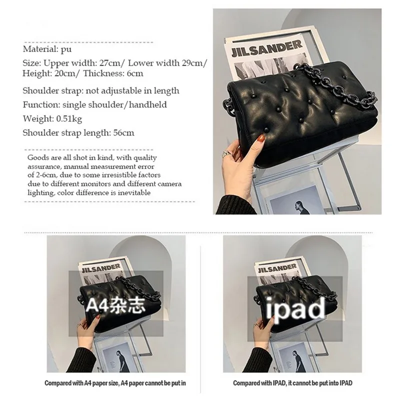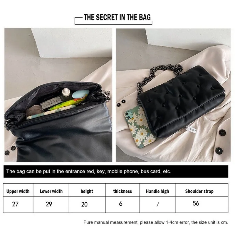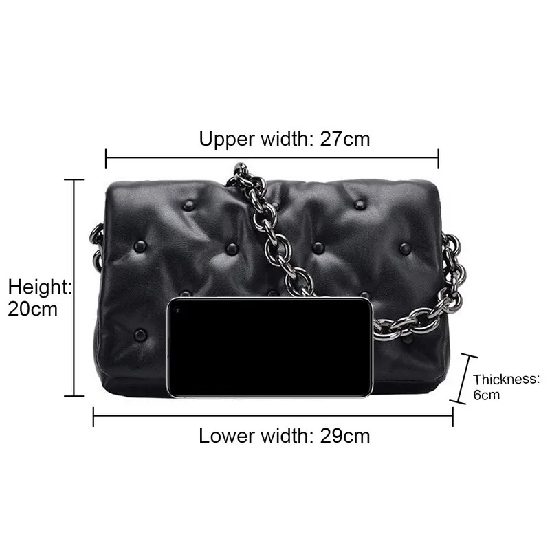 Особенности: женская сумка через плечо из искусственной кожи с толстой металлической цепочкой, сумка через плечо, женская сумка-клатч, женская сумкаПримечание: При ручном измерении допускается погрешность в 1-3 смРазмер: 29*20*6 смЦвет: синий, черныйМатериал: ПУПосылка входит: сумкаИнструкции по уходу: рекомендуется ручная стирка