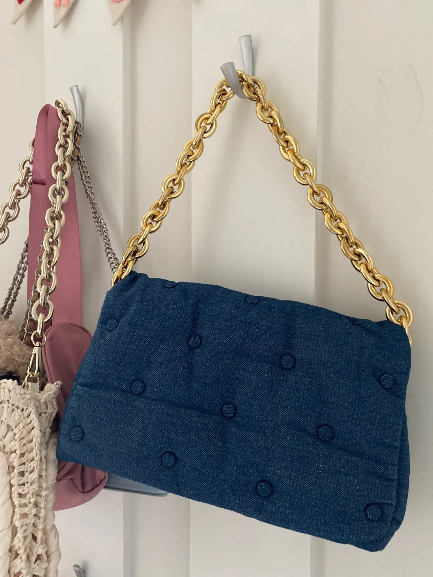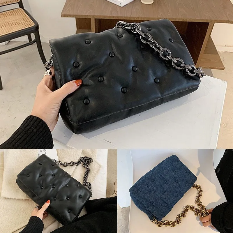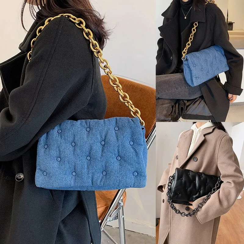 Женская сумка на плечо, 2021 джинсовая качественная толстая металлическая цепочка, Наплечные кошельки и сумка, женский клатч, женская сумка