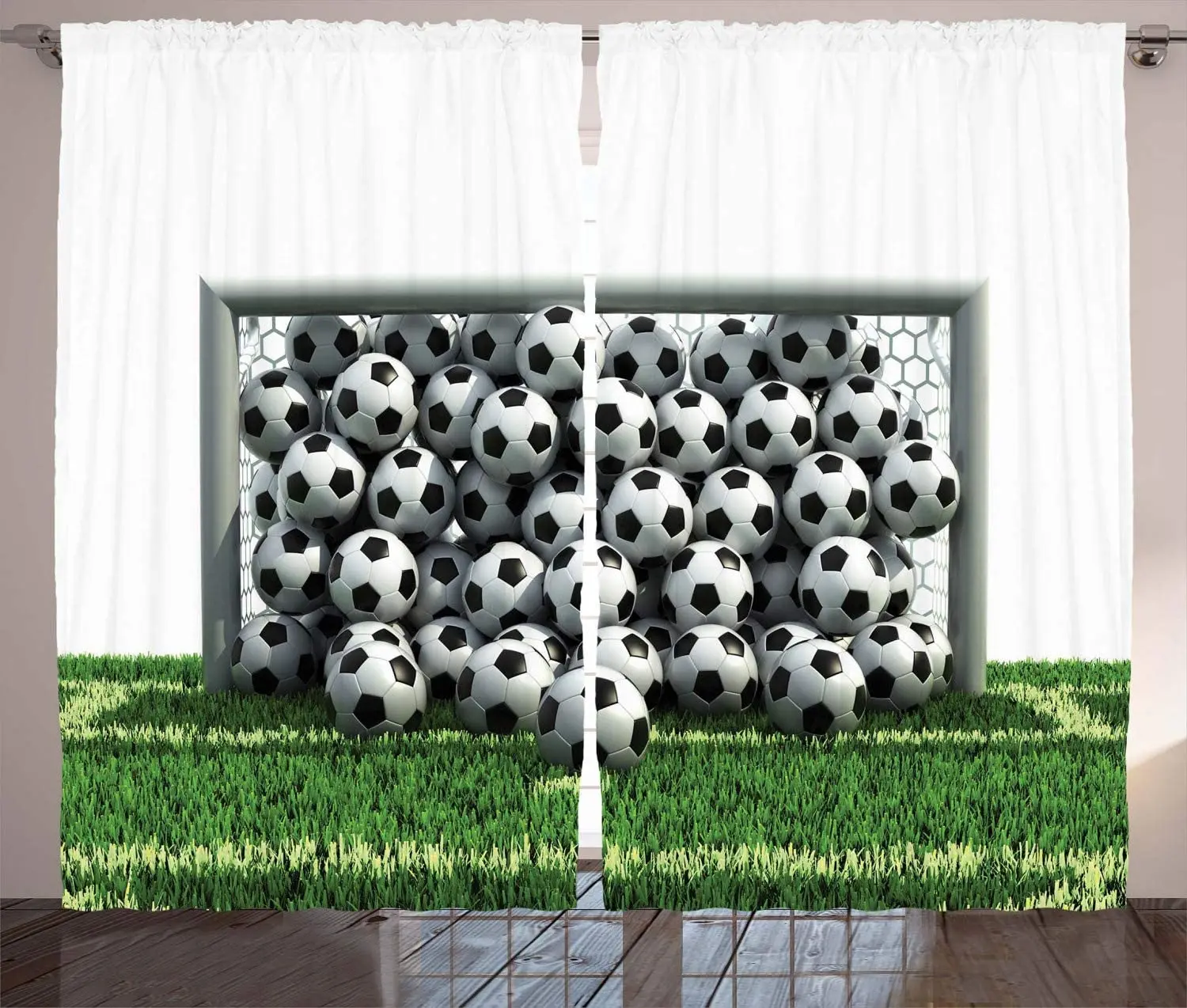 Спортивные оконные шторы, домашний декор, занавески для гостиной с зеленым футбольным полем, сетка для гол, оконные драпировки для спальни