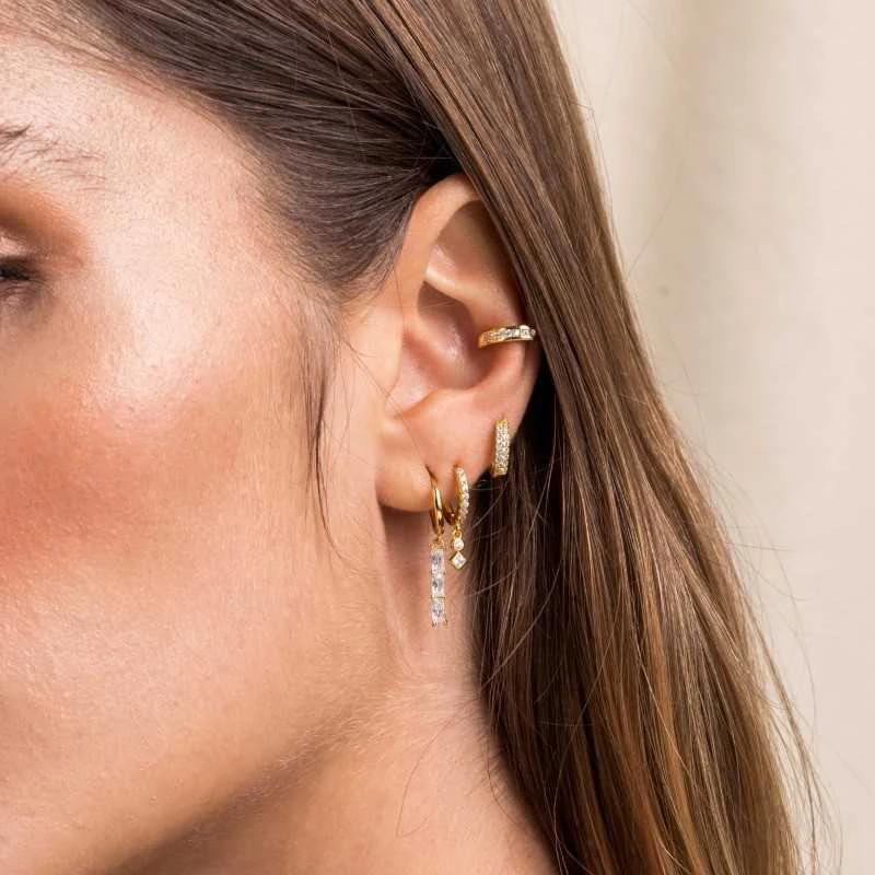Серьги-кольца Huggie женские из серебра 925 пробы с кристаллами и п...
