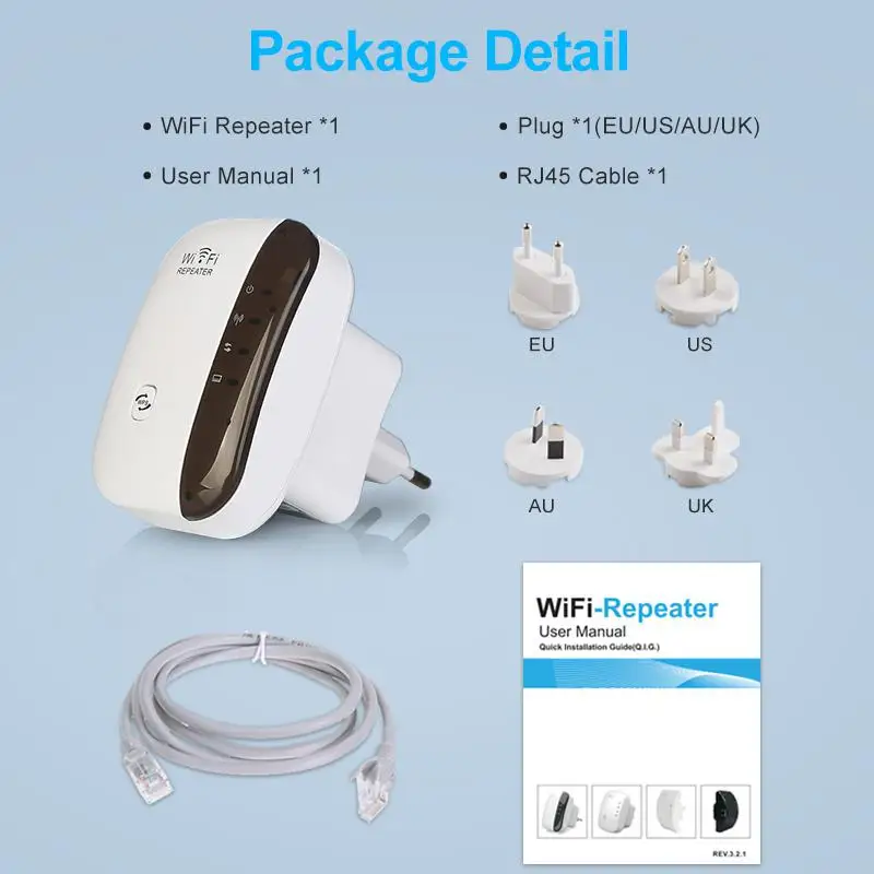Функция WPS: Этот ретранслятор wifi поддерживает соединение WPS, одно касание для подключения и нет необходимости вводить пароль, удобно для клиентов.