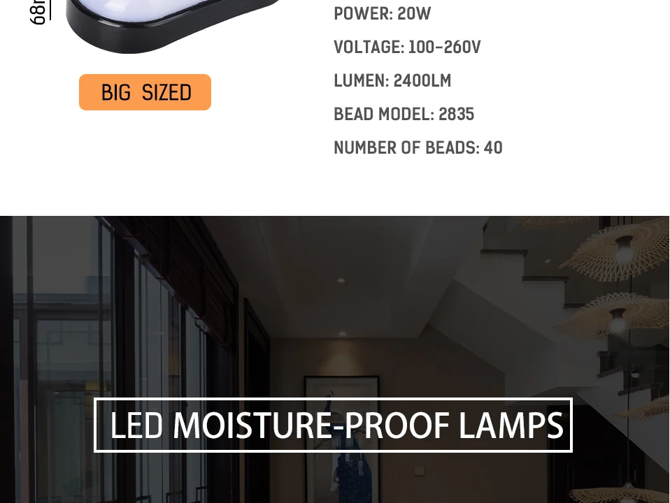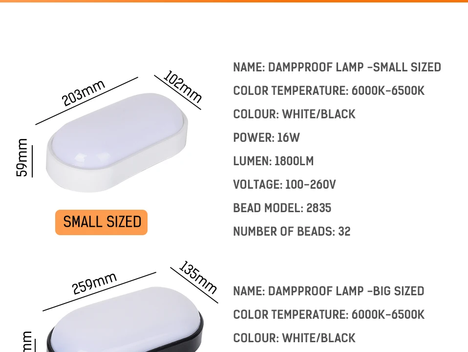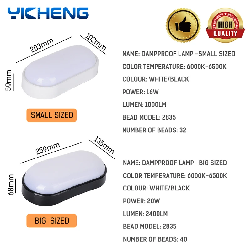 Водонепроницаемый светодиодный потолочный светильник, влагостойкая лампа с защитой от пыли и москитов, овальная настенная лампа с поверхностным креплением, 16 Вт, 20 Вт