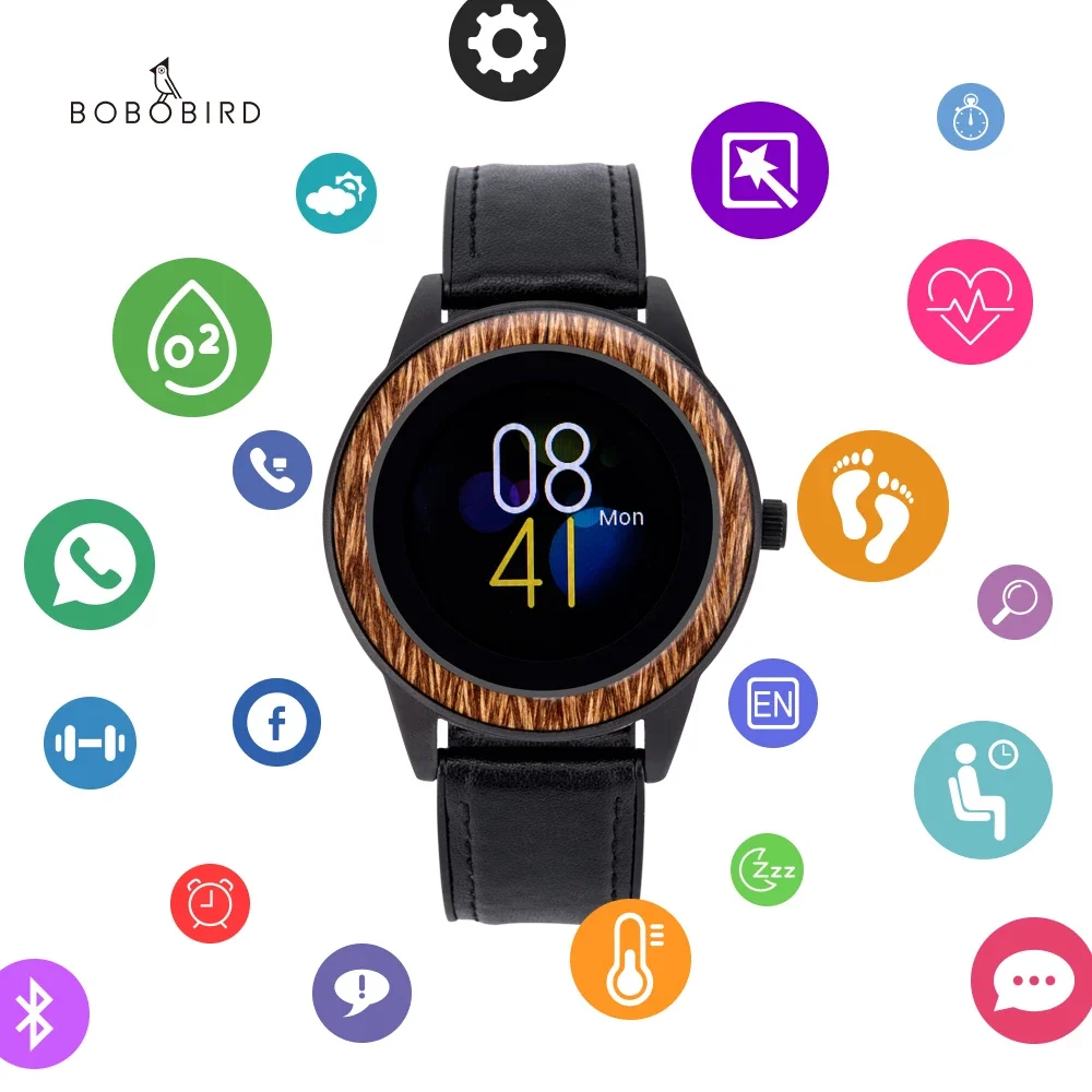 Смарт-часы BOBO BIRD мужские, деревянные, водонепроницаемые, IP68, Bluetooth 5,0, пульсометр, спортивные часы для Android, IOS