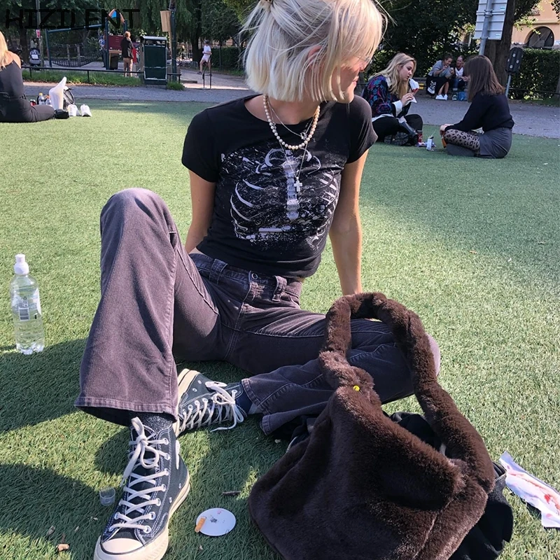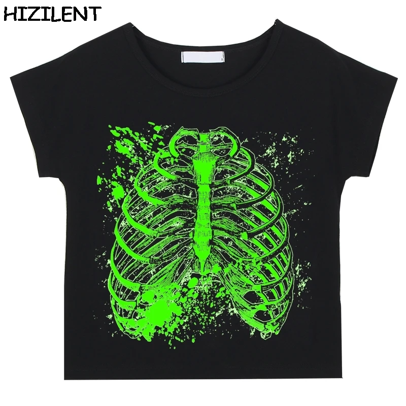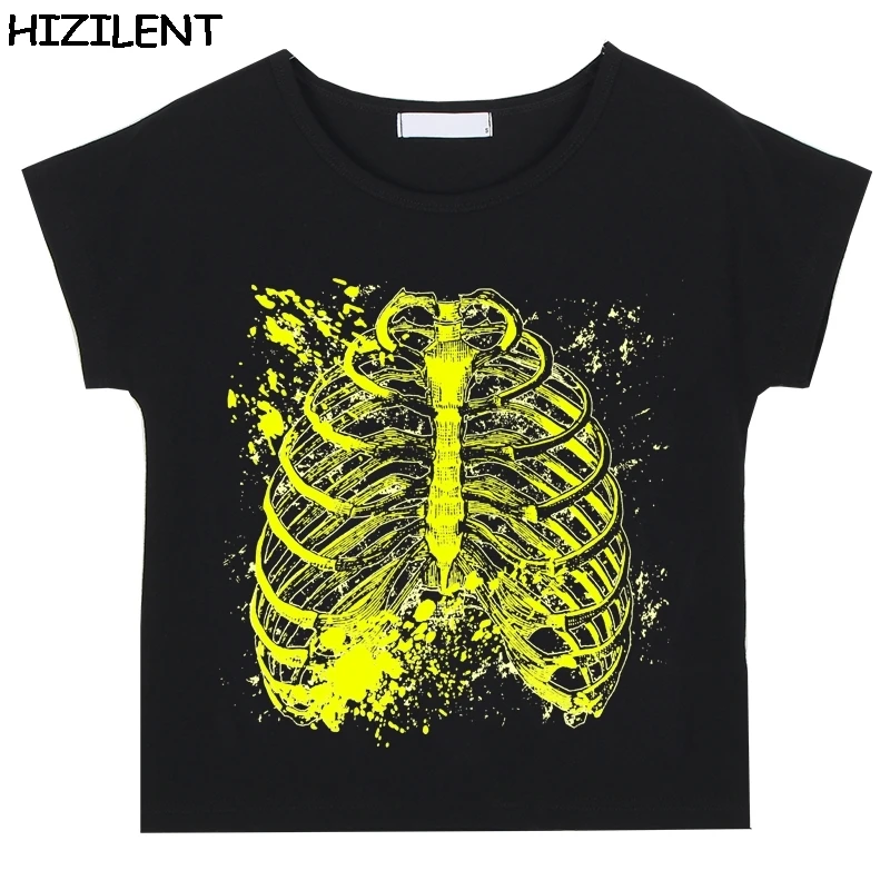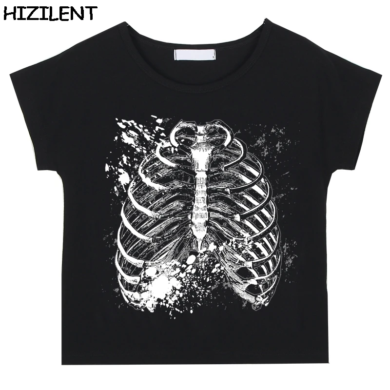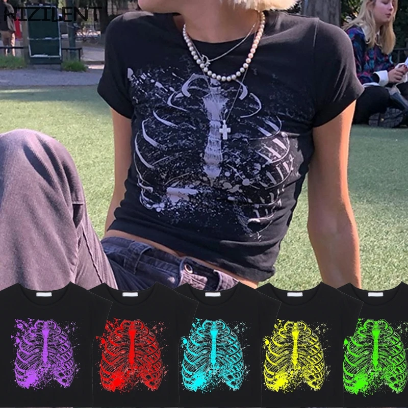 Женская футболка y2k, топы со скелетом, гранж, с графическим принтом, лето 2021, укороченный топ в стиле Харадзюку, черный, винтажный, с коротким рукавом