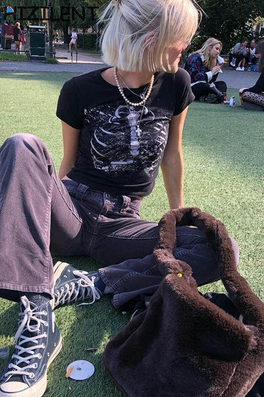 Женская Винтажная футболка в стиле Харадзюку, черная футболка с гра...