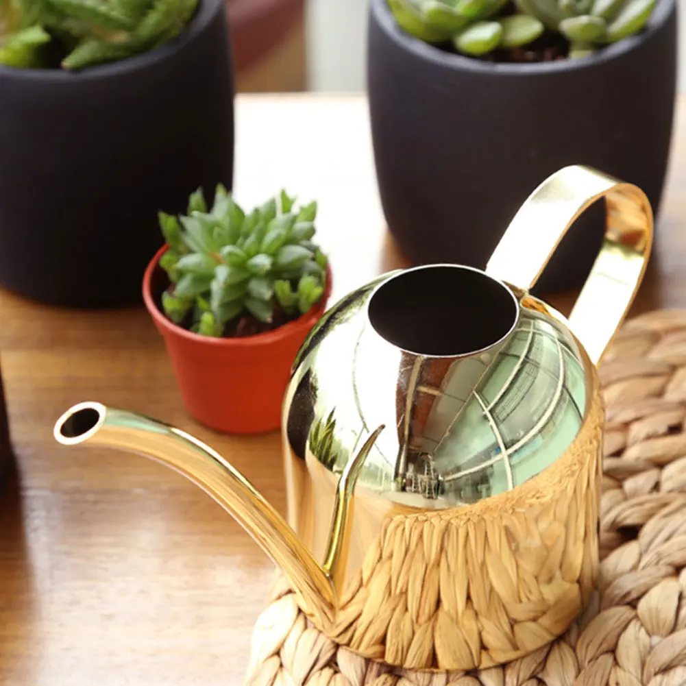 Кастрюля для полива 500 мл из нержавеющей стали, длинная банка для зеленого полива растений, золотой чайник для маленького полива, садовый инструмент # W0