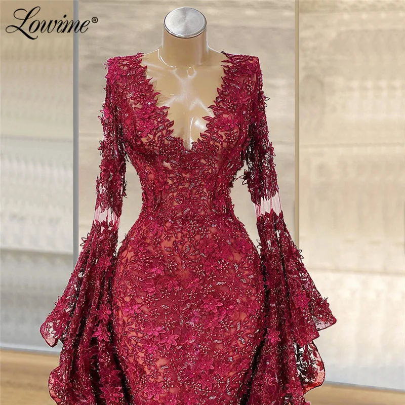 Женское длинное вечернее платье Lowime, бордовое кружевное платье для выпускного вечера, в стиле знаменитостей, 2021