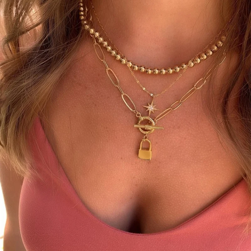 Женская многослойная цепочка на шею, многослойное ожерелье золотого...