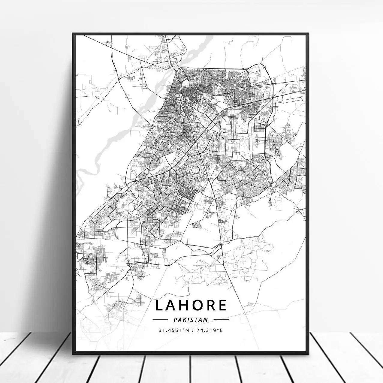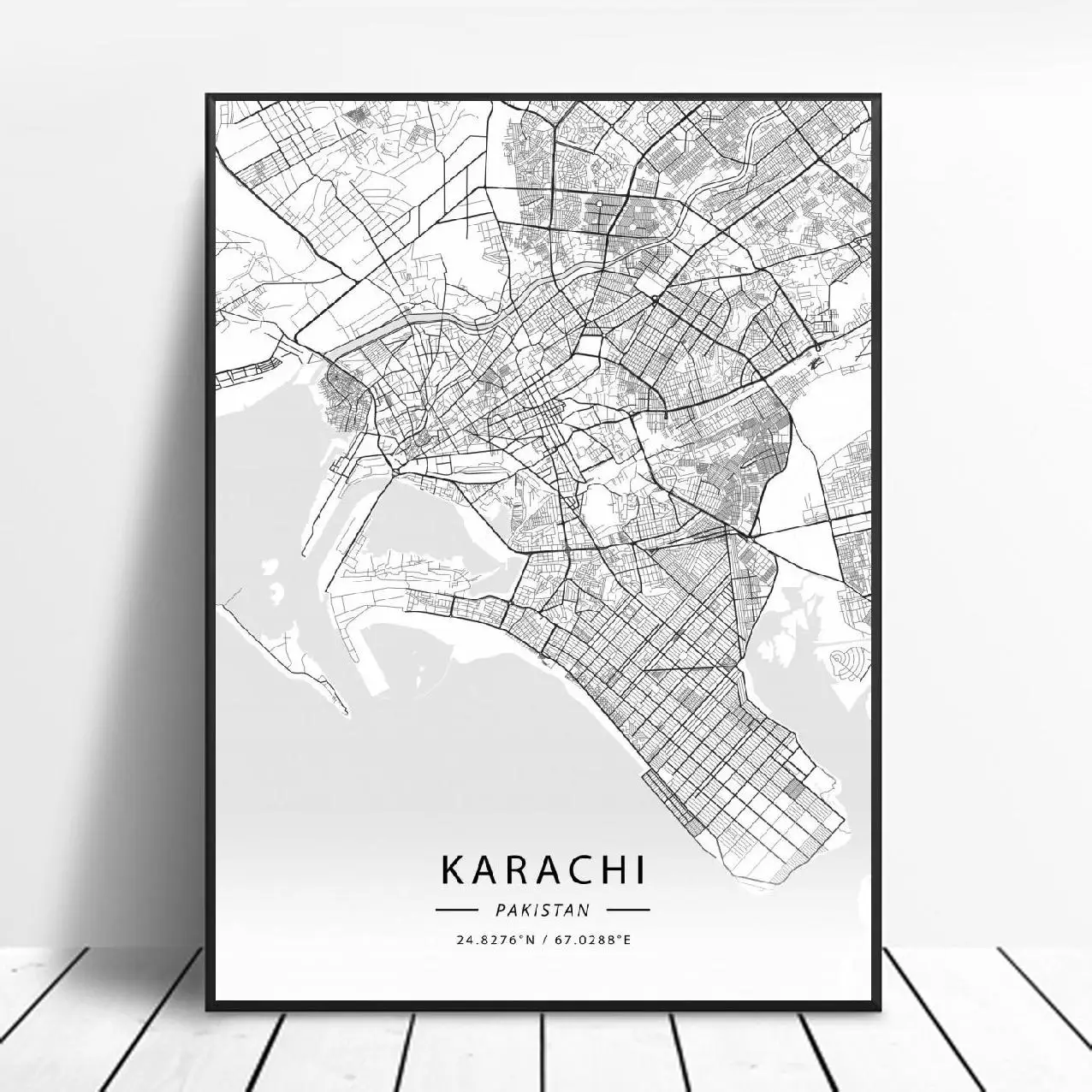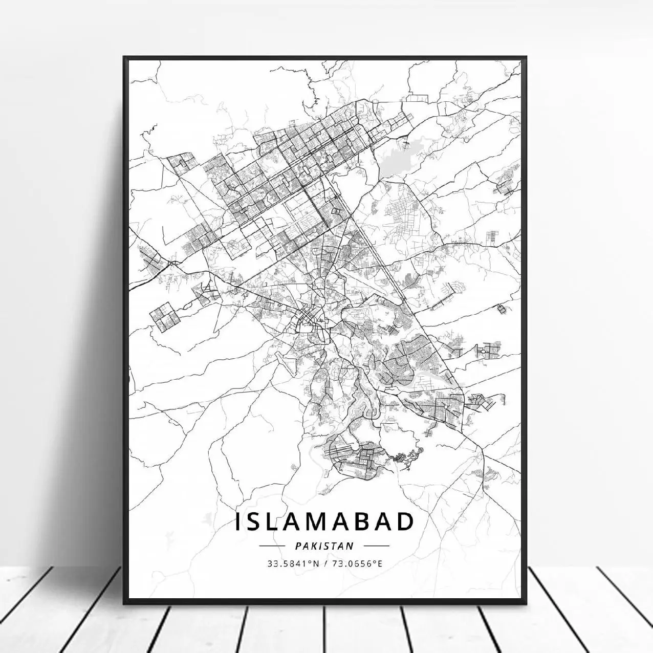 Hd Печать Исламабад Лахор Карачи Пакистан холст Художественная карта постер настенная живопись для гостиной домашний Декор Рамка