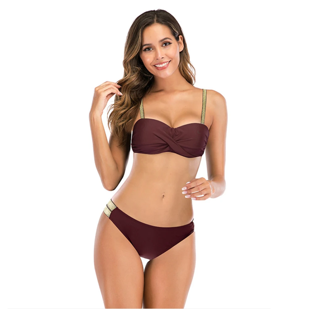 Новинка, сексуальное однотонное бикини, женский купальник, бандо, б...