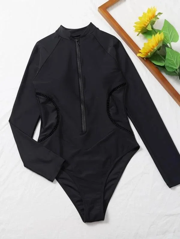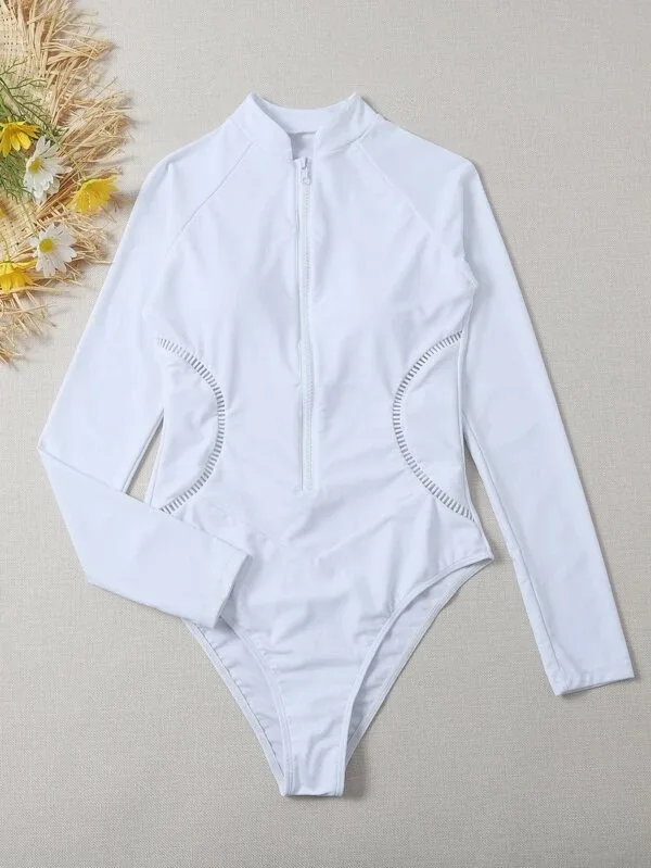 Белый одноцветный Цельный купальник с длинным рукавом, спортивный женский купальный костюм, Пляжная купальная одежда для серфинга