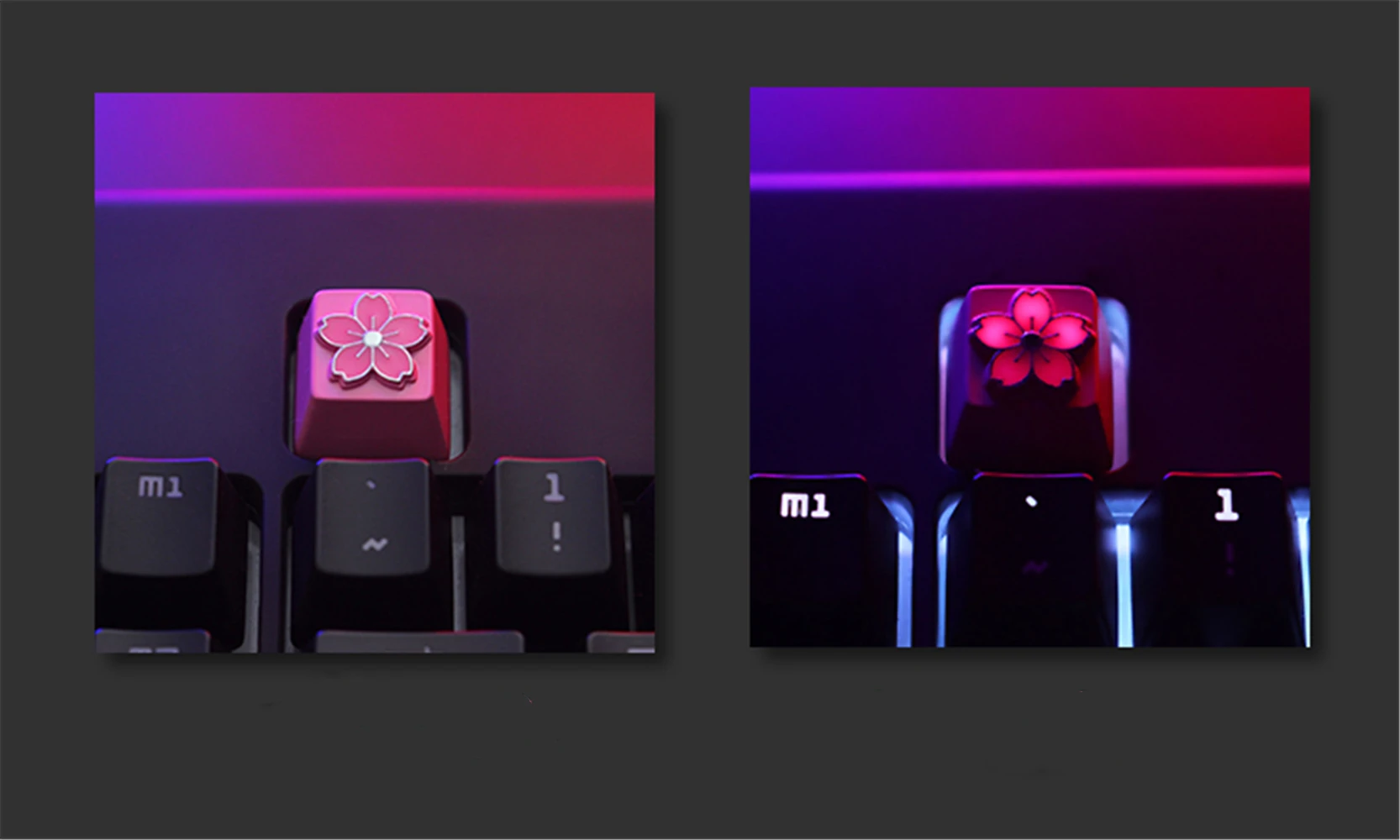 Высота колпачка: общая высота колпачка ключа составляет около 11,0 мм, что близко к высоте OEM R4. После снятия рельефного рисунка поверхность составляет около 9,8 мм. Она близка к оригинальной высоте вишни R4. Рекомендуется устанавливать в области ESC, F и в области основных значений.