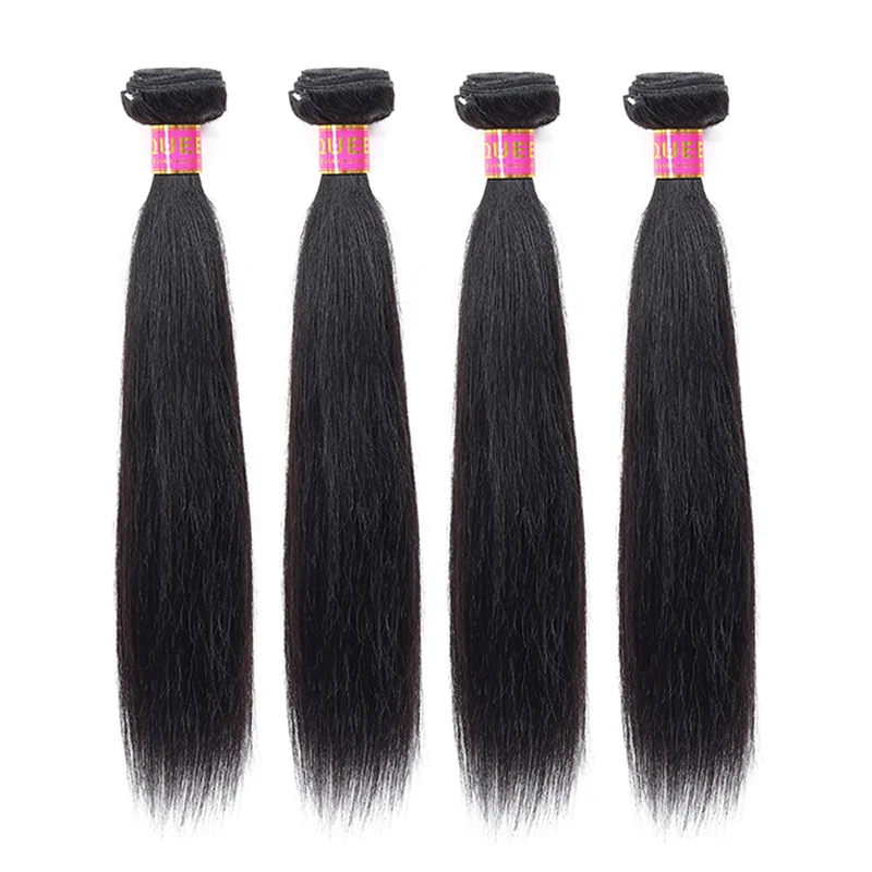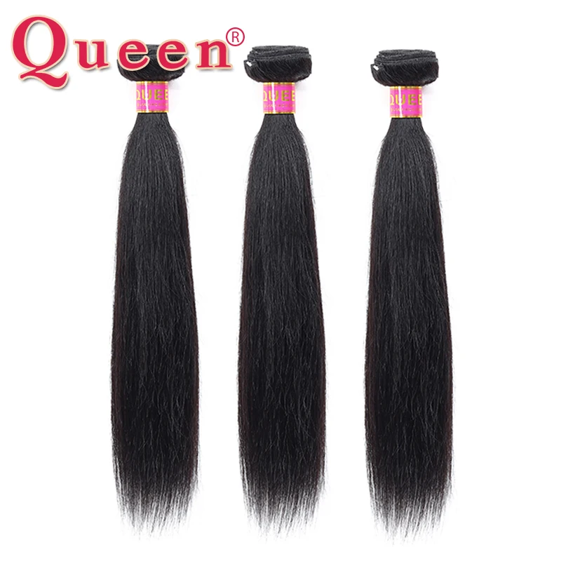 Пряди бразильских прямых натуральных волос, пряди34 шт., 100% прядей Реми, натуральные кудрявые пучки волос пучков волос для наращивания QUEEN