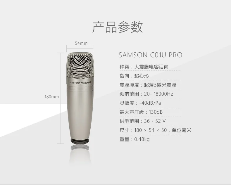 Представляя первый в мире профессиональный USB Студийный конденсаторный микрофон (C01U) на совершенно новый уровень, Samson представляет C01U Pro. Этот высококачественный usb-конденсаторный микрофон-идеальный предмет для любой домашней студии. Созданная из видения, чтобы преобразовать мир музыкальной записи, C01U Pro идеально подходит для таких приложений, как Подкаст, VoIP, речь на текстовые платформы и, конечно, запись вокальных и инструментальных музыкальных представлений.