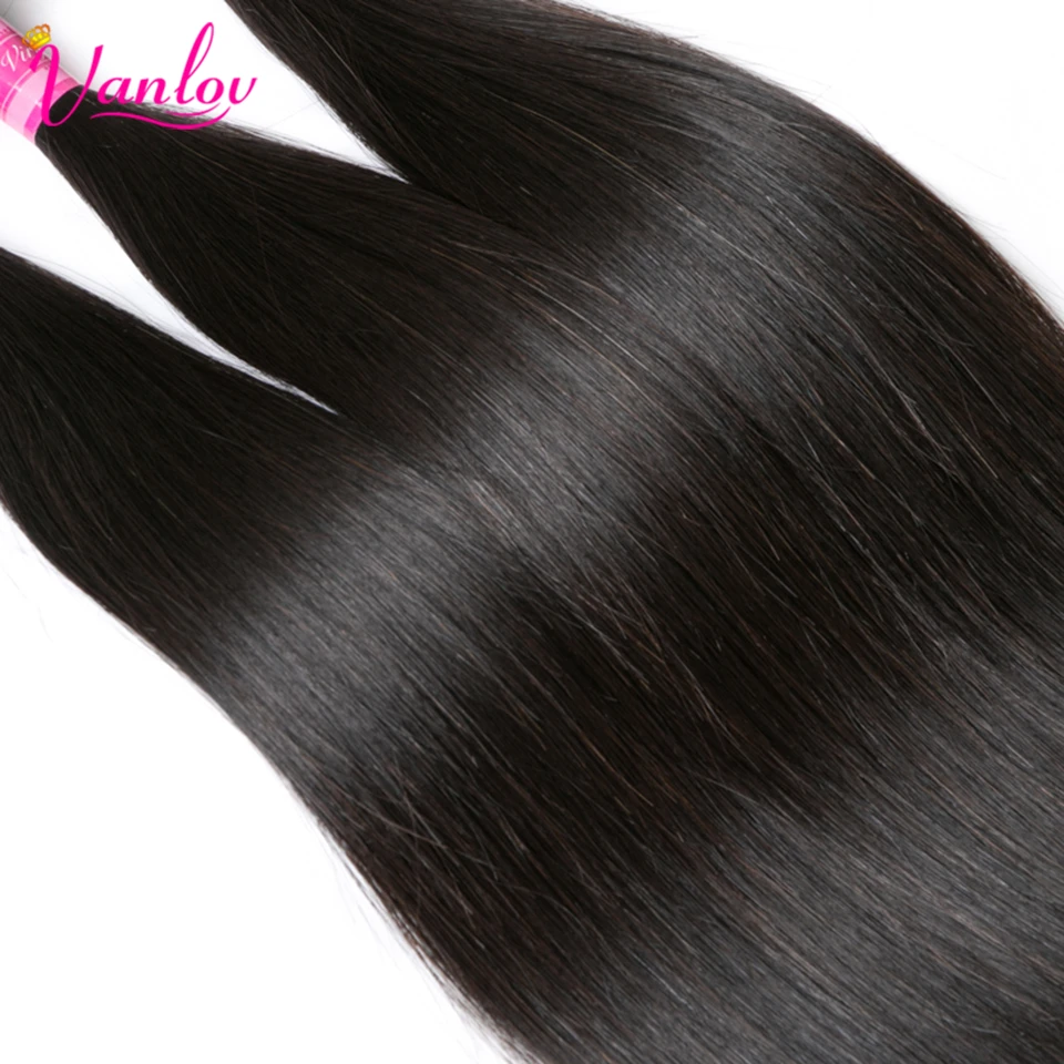 Vanlov прямые человеческие волосы пряди с закрытием индийские волосы плетение пряди с закрытием предварительно выщипывание 4x4 100% Remy волосы для наращивания