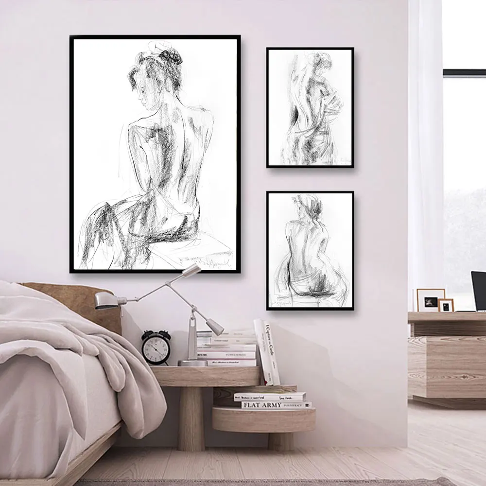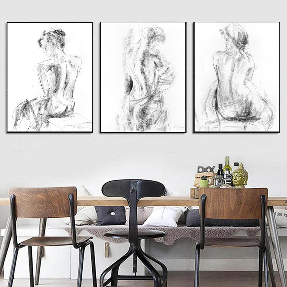 Абстрактная фигурка, плакат, черно-белая Картина на холсте, Женская...
