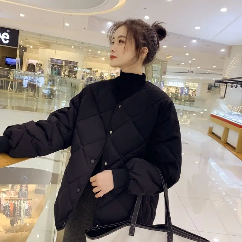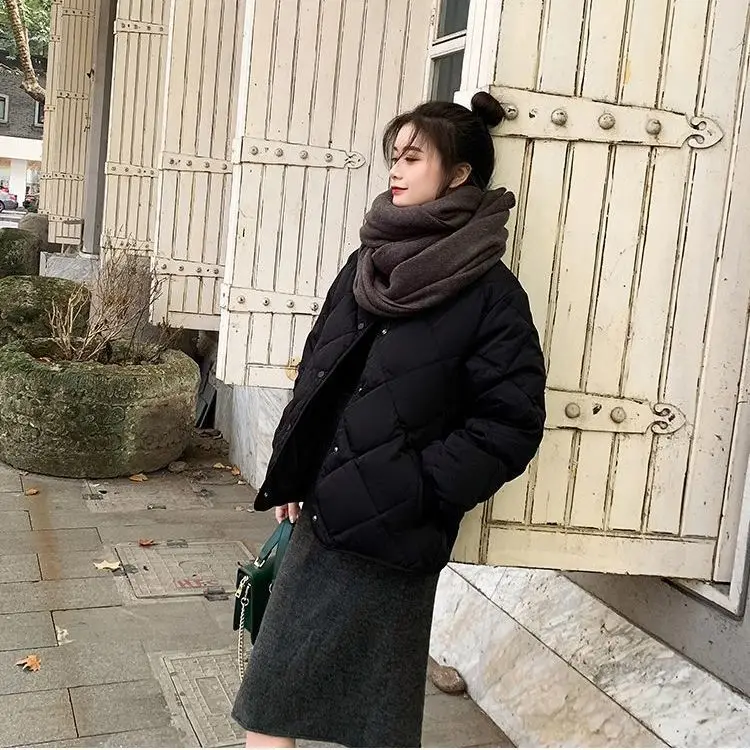 Женская куртка, парка, зимнее хлопковое пальто молочного чайного цвета, женское короткое хлопковое пальто с круглым вырезом, пальто в форме кокона, Женская куртка