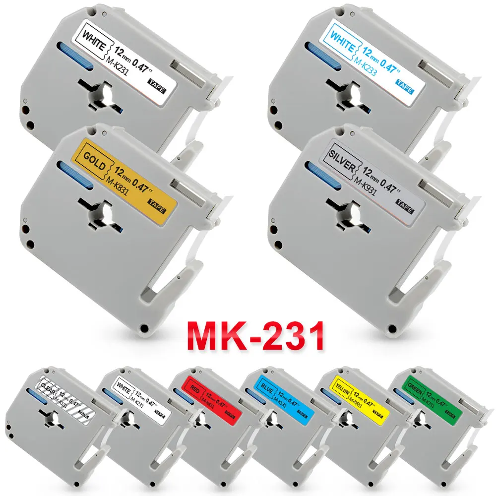 9/12 мм MK-231 M-K231 MK231 запечатанных лент для MK-221 M-K221 MK221 м клейкие Ленты Совместимость для Brother P Touch этикетировщик PT-90 PT80 PT70 PT65