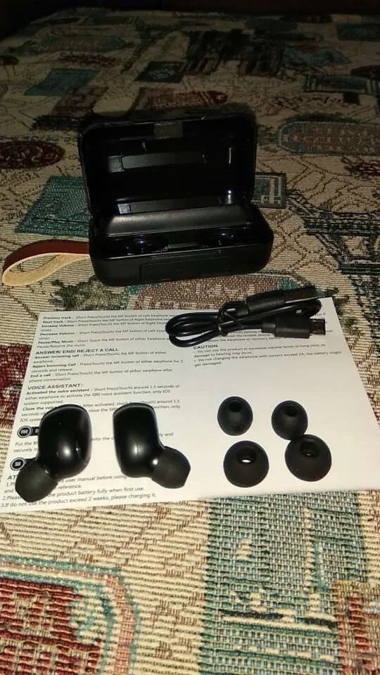 Это просто потрясающие наушники. Доставка в Россию в течение 11 дней. Наушники заряжаются в течение длительного времени, вы можете использовать один наушник, а второй при зарядке и использовать в свою очередь. Зарядная коробка, может использоваться в качестве внешнего аккумулятора для телефона. Два разъема для зарядки телефона и еще один для зарядки самой коробки. Отличная покупка. Для ушей различных абашуры. Есть зарядный кабель