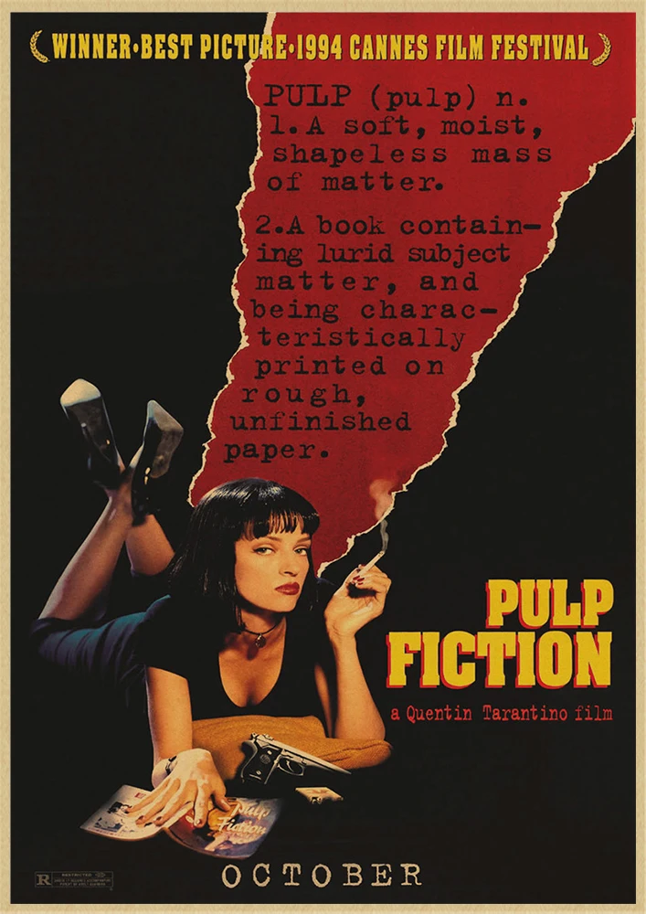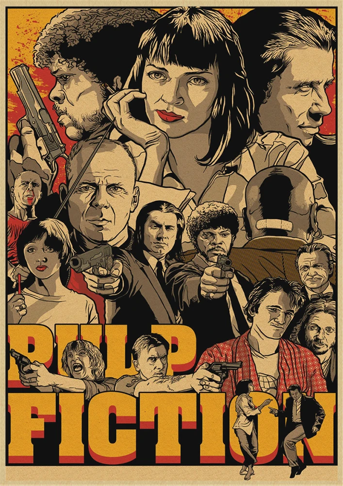 Популярный классический фильм целлюлозная фантастика HD Высококачественная ретро крафт-бумага художественный стиль декоративная живопись постер наклейка на стену A165