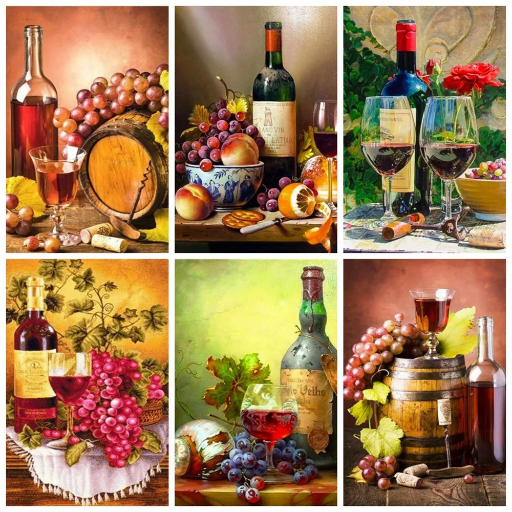 Huacan 5D алмазов картина камни в форме ромба Новое поступление пейзаж вина Стразы Алмазная вышивка продажи фруктов Мозаика Декор для дома