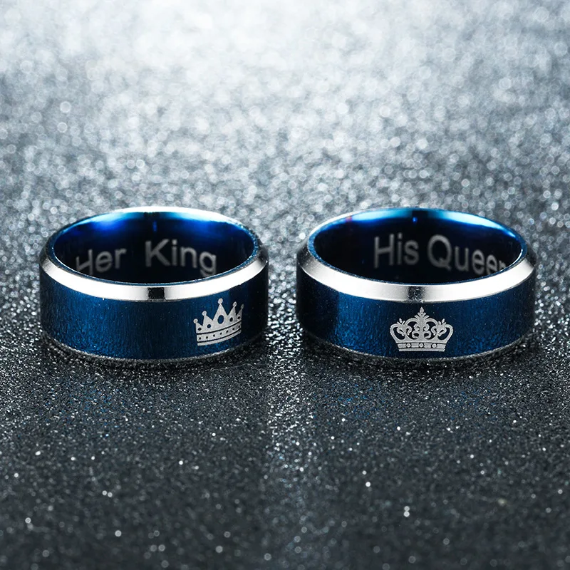 Кольца из нержавеющей стали синего цвета, набор колец для пары с на...