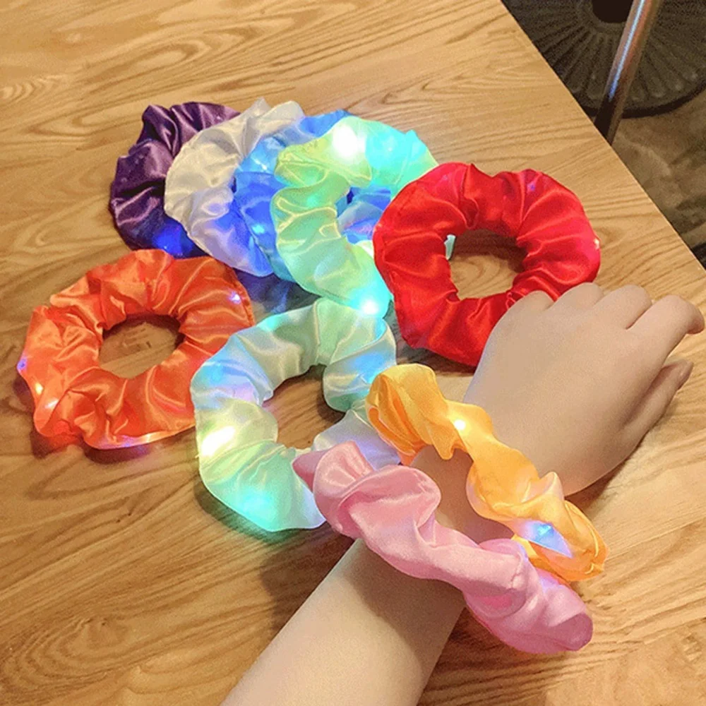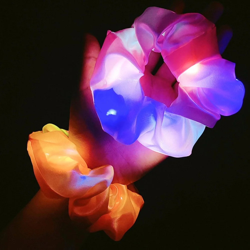 Светодиодный, светящееся кольцо для волос в толстой кишке, сетка, красная головка, веревка для волос, банджи, канат для волос, Корейская простая резинка, аксессуары для волос