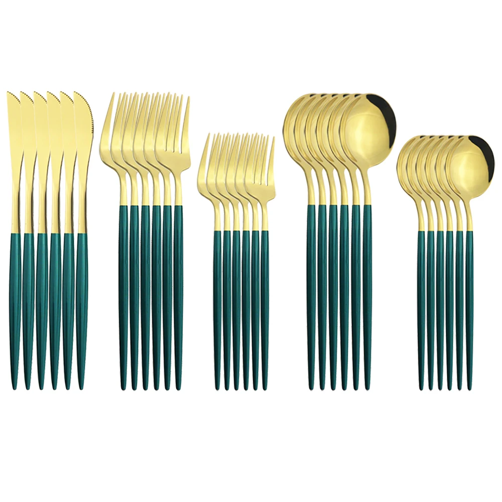 30 шт. зеленый золота приборы посуда Нержавеющаясталь набор столовых ножей вилки десертная ложка набор серебряных изделий набор столовой посуды для кухни