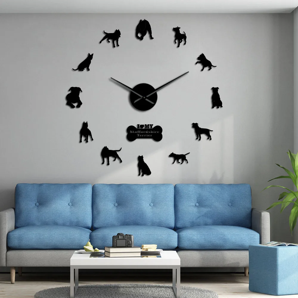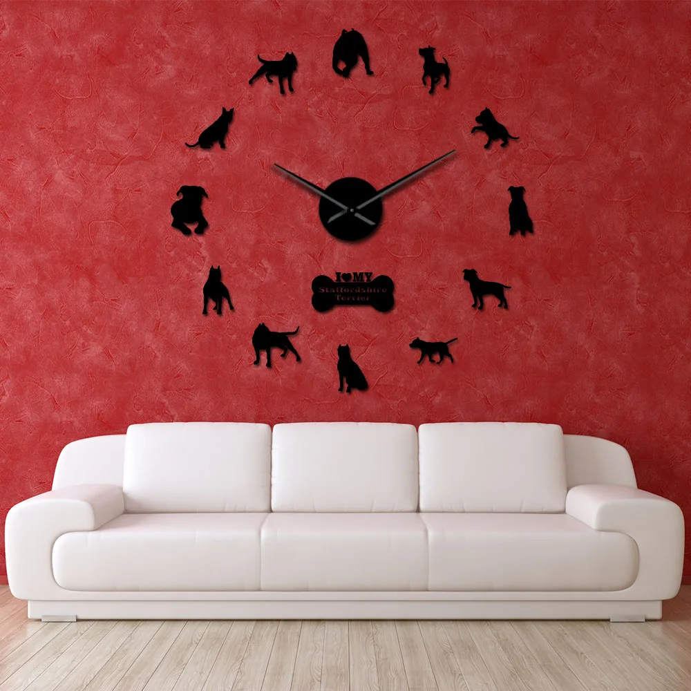 Декоративные настенные часы, настенные художественные часы, стаффордширский бультерьер, сделай сам, большой стаффи, Гигантская стена, собака, породы, орнамент, памятный подарок