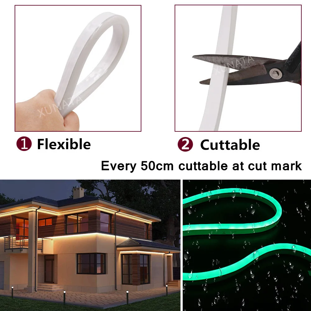 Комплект неоновых RGB лент 12 В постоянного тока + источник питания, водонепроницаемая внутренняя и наружная Светодиодная лента для украшения дома Гибкая ленточная 5050 RGB