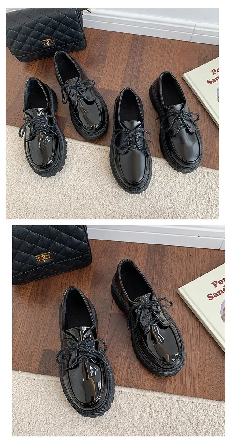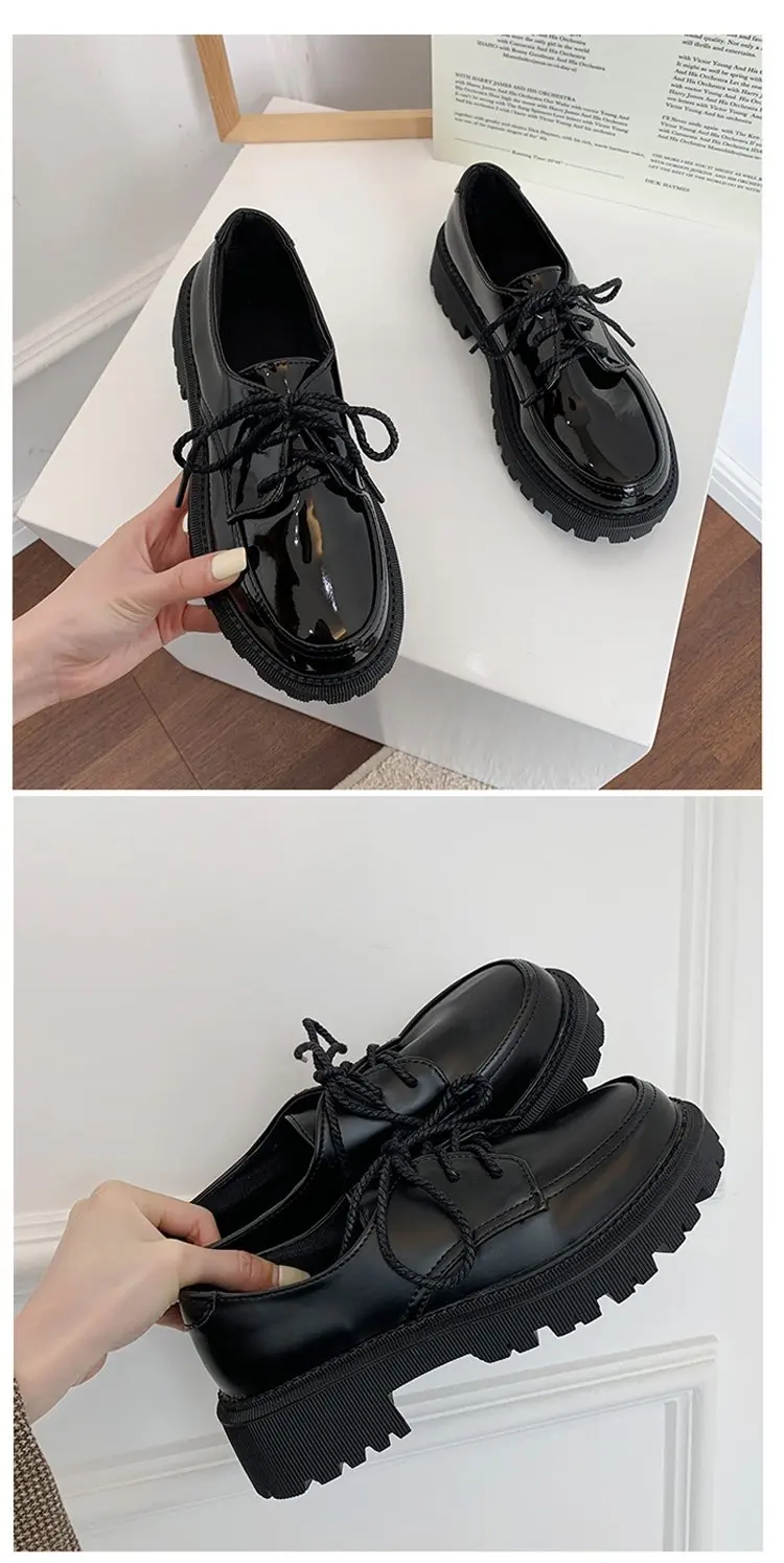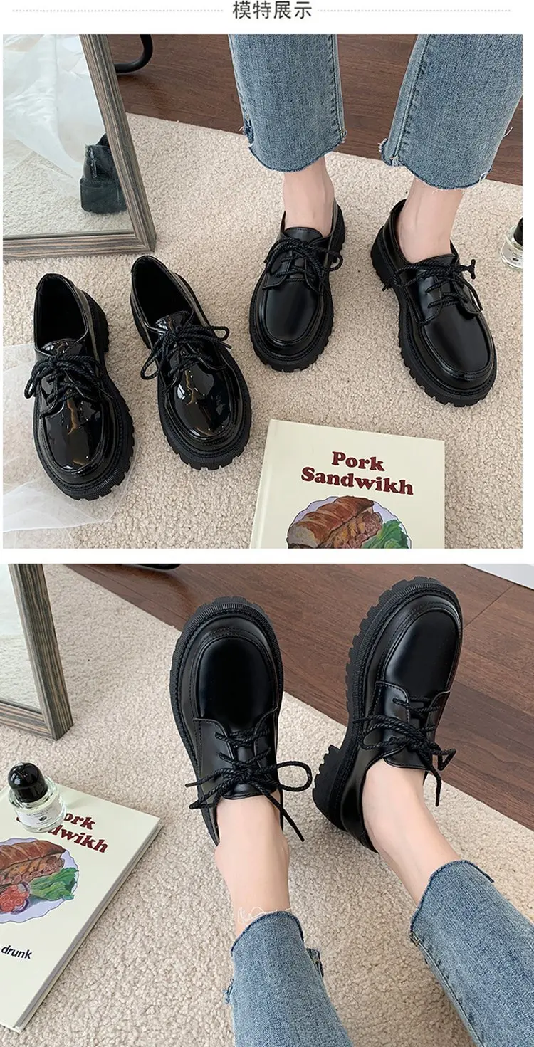 Школьная обувь в японском стиле, черные, коричневые туфли на платфо...