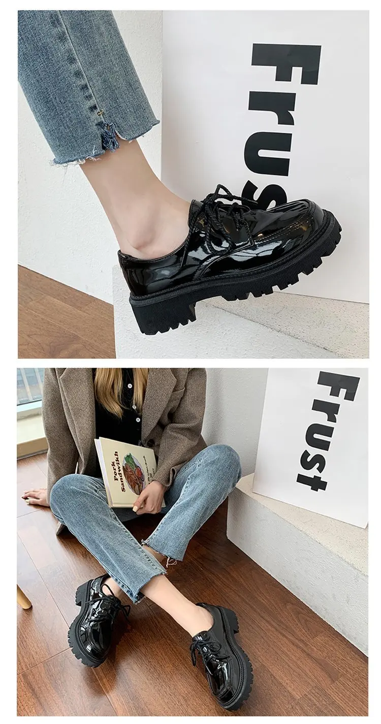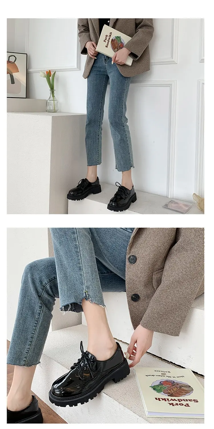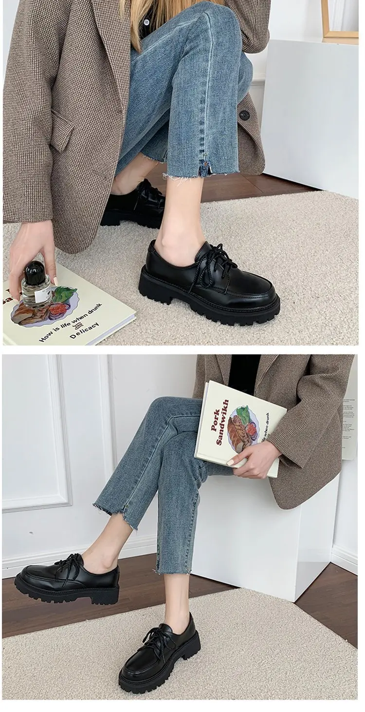 Женские ботинки на толстой подошве, Осенние британские студенческие...