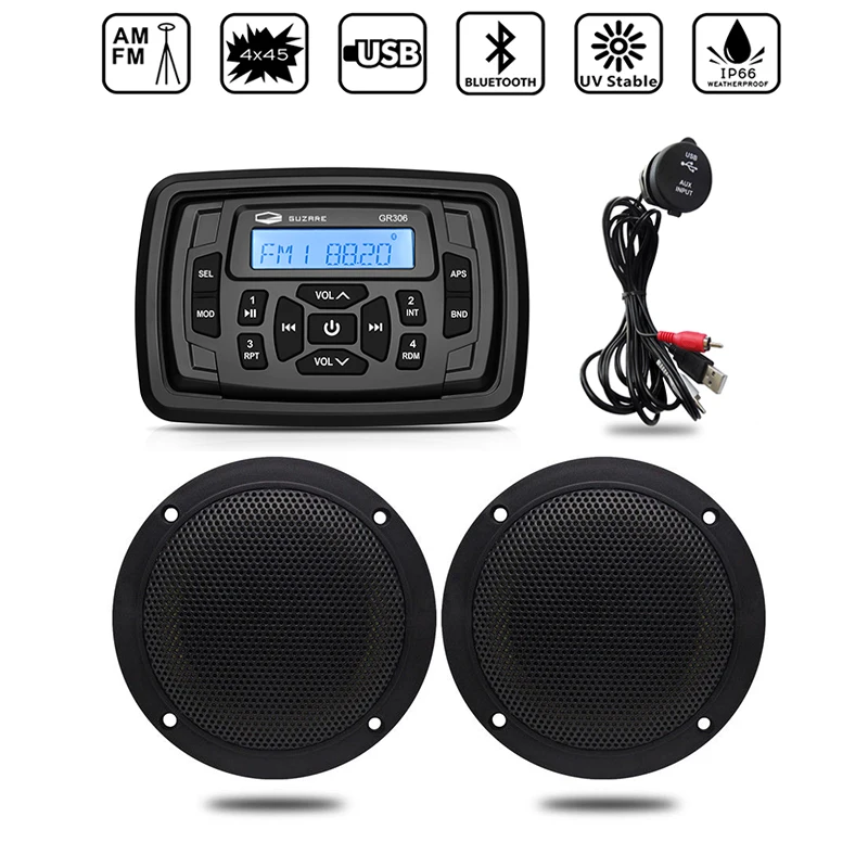 Водонепроницаемый морской радио аудио стерео лодка Bluetooth медиа-ресивер MP3 плеер + 3 "Морской Динамик + USB кабель для RV UTV гольф-кары
