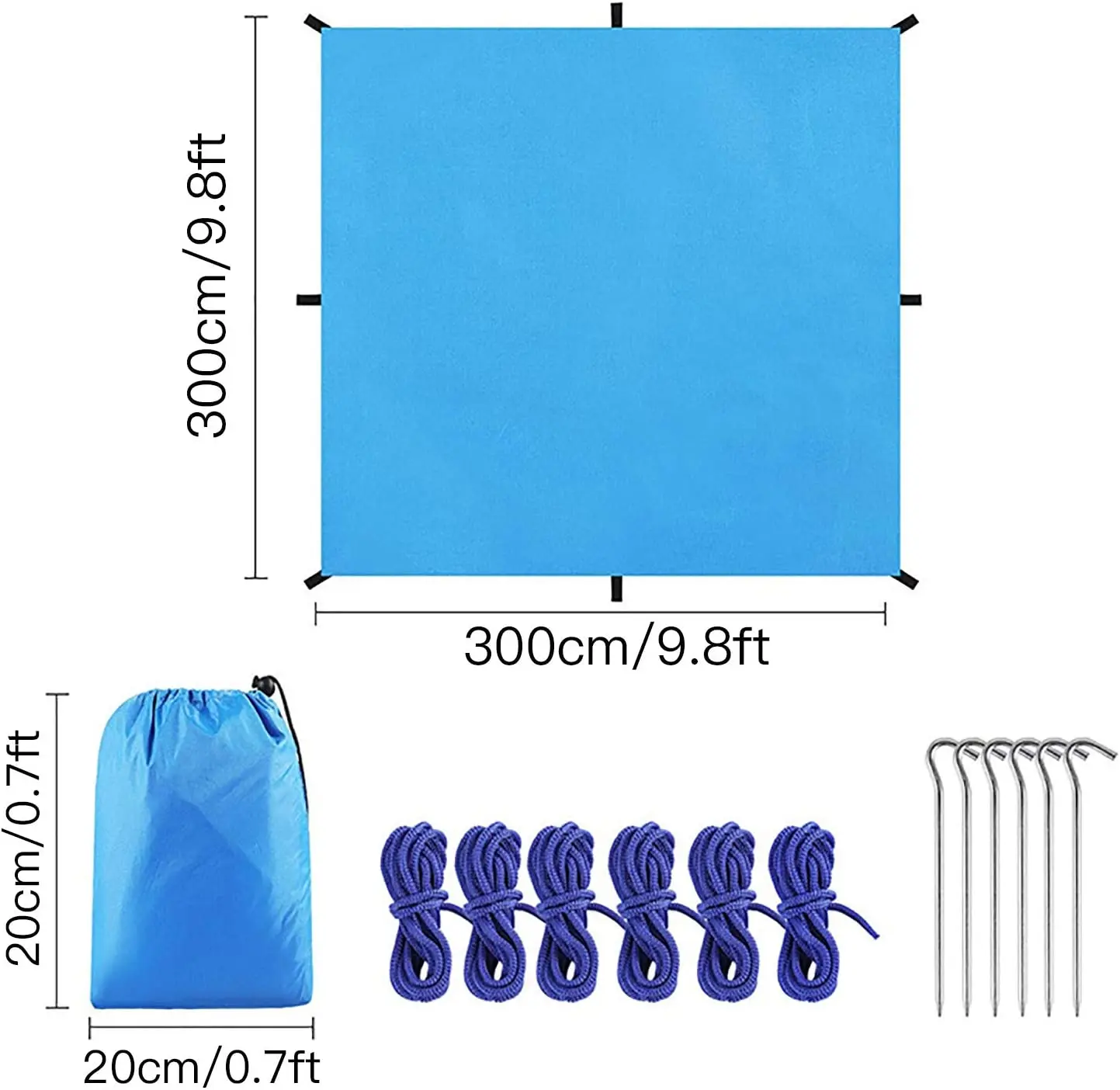 Package Included:6x Aluminum Ground Nails;6 x Wind Ropes ;1x Sunshade ;1x Storage Bag