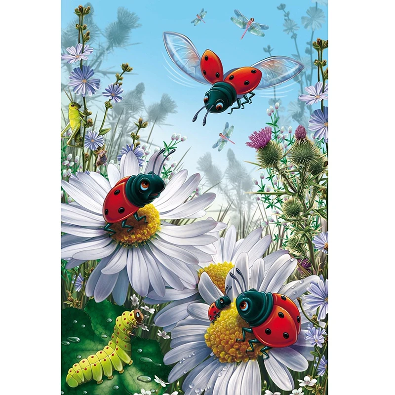 Маргаритка и Божья коровка "картина домашний декор 5d diy Алмазная картина Алмазная мозаика Вышивка крестом полная Алмазная вышивка KBL