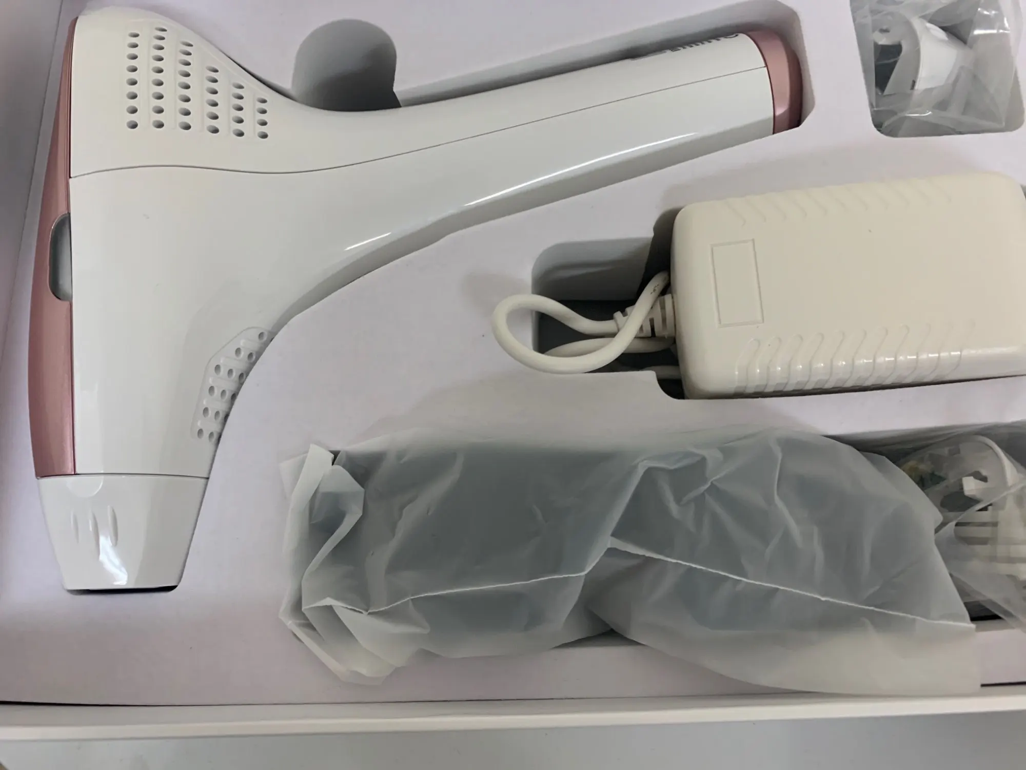 Устройство поставляется в собственной коробке + подарочный массажный инструмент для лица И три линзы прибыли точно так, как вы попросили. Я рекомендую иметь дело с продавцом