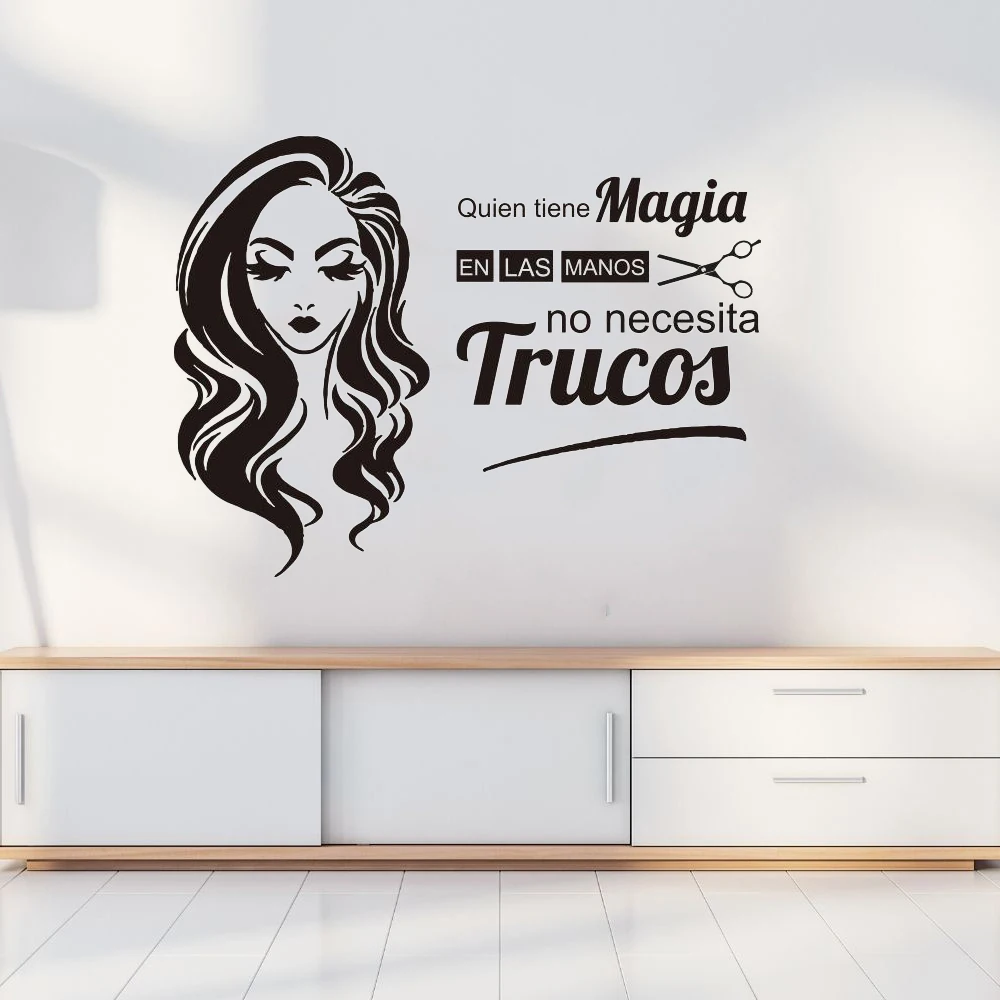 Испанский Красота салонах парикмахеров, которые есть Волшебная стены Стикеры волосы с кератиновыми пластинами спа Красота для салонов, магазинов, на окно, стекло, стену Наклейка