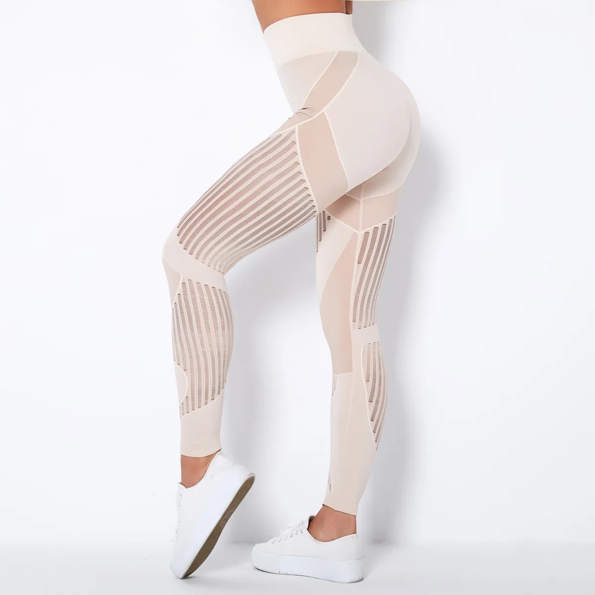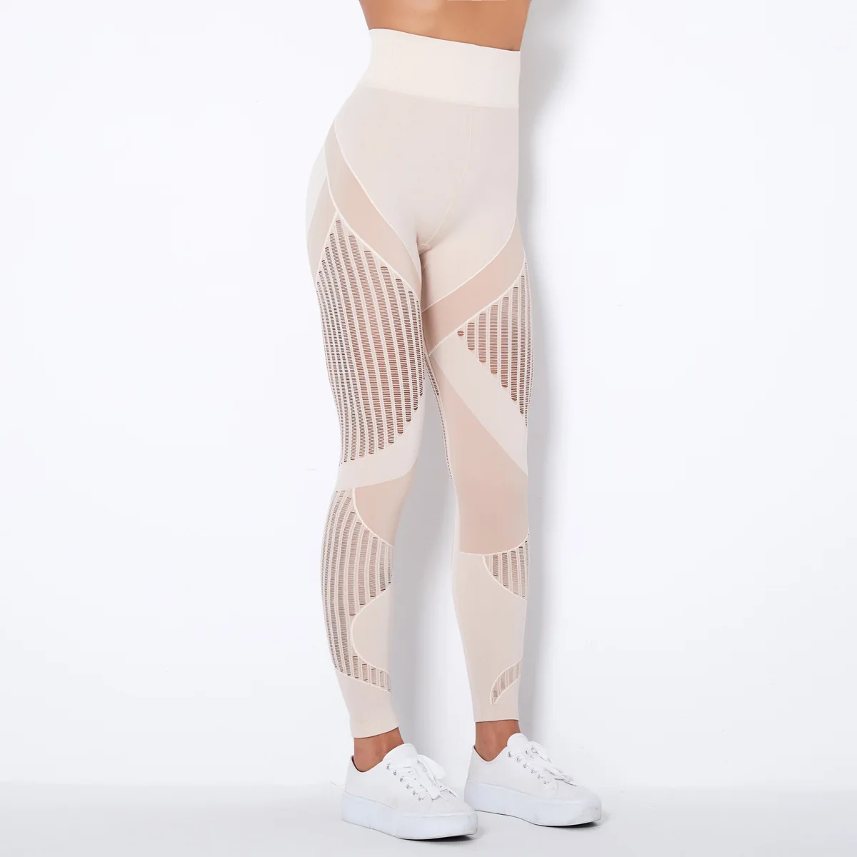 Леггинсы женские сетчатые, бесшовные трикотажные спортивные Леггинс...