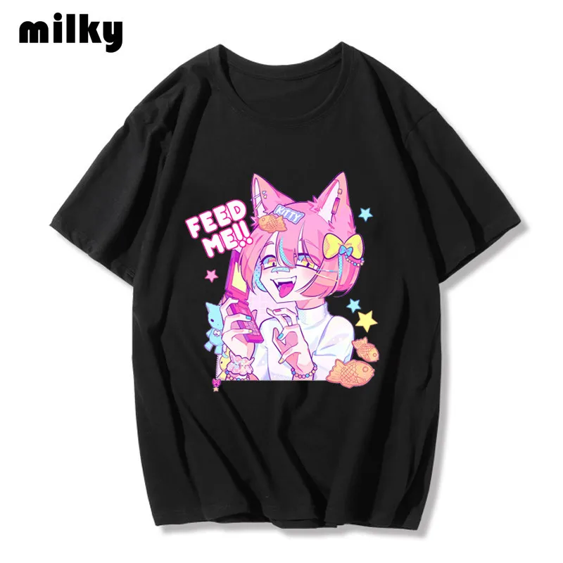 Goth Streetwear shirts for womenwomen Anime Print t shirt