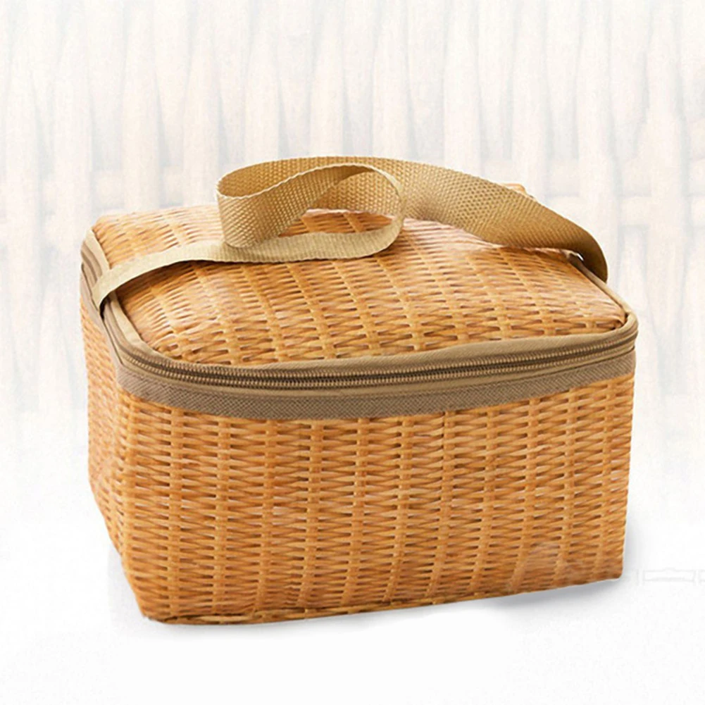 Переносная плетеная Сумка из ротанга для кемпинга и пикника, водонепроницаемая посуда, пищевой контейнер, корзины, изолированный термоохладитель