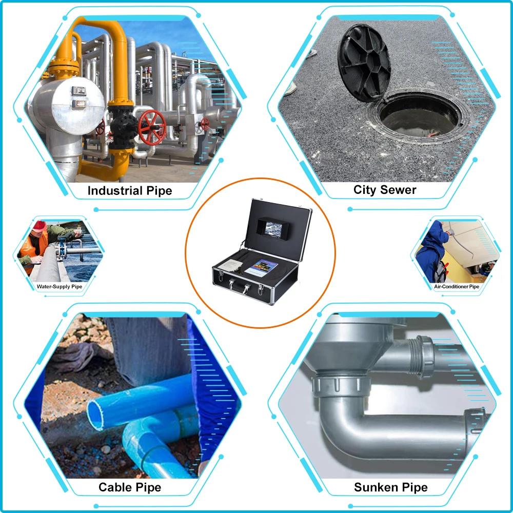 Этот продукт подходит для осмотра трубопроводов, канализации, воздуховодов, резервуаров, подводных и других темных условий, проверки внутренних трещин, коррозии, сварки, пробок и других необычных обстоятельств. Он широко используется в областях обнаружения, таких как муниципальные трубопроводы, электричество, телекоммуникации, полевые исследования и спасение при стихийных бедствиях.