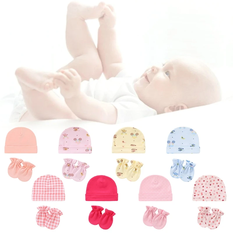 Детские хлопковые перчатки с защитой от царапин + шапка комплект для защиты лица новорожденных варежки с защитой от царапин теплый комплект шапочки подарки для новорожденных