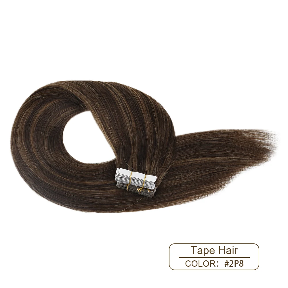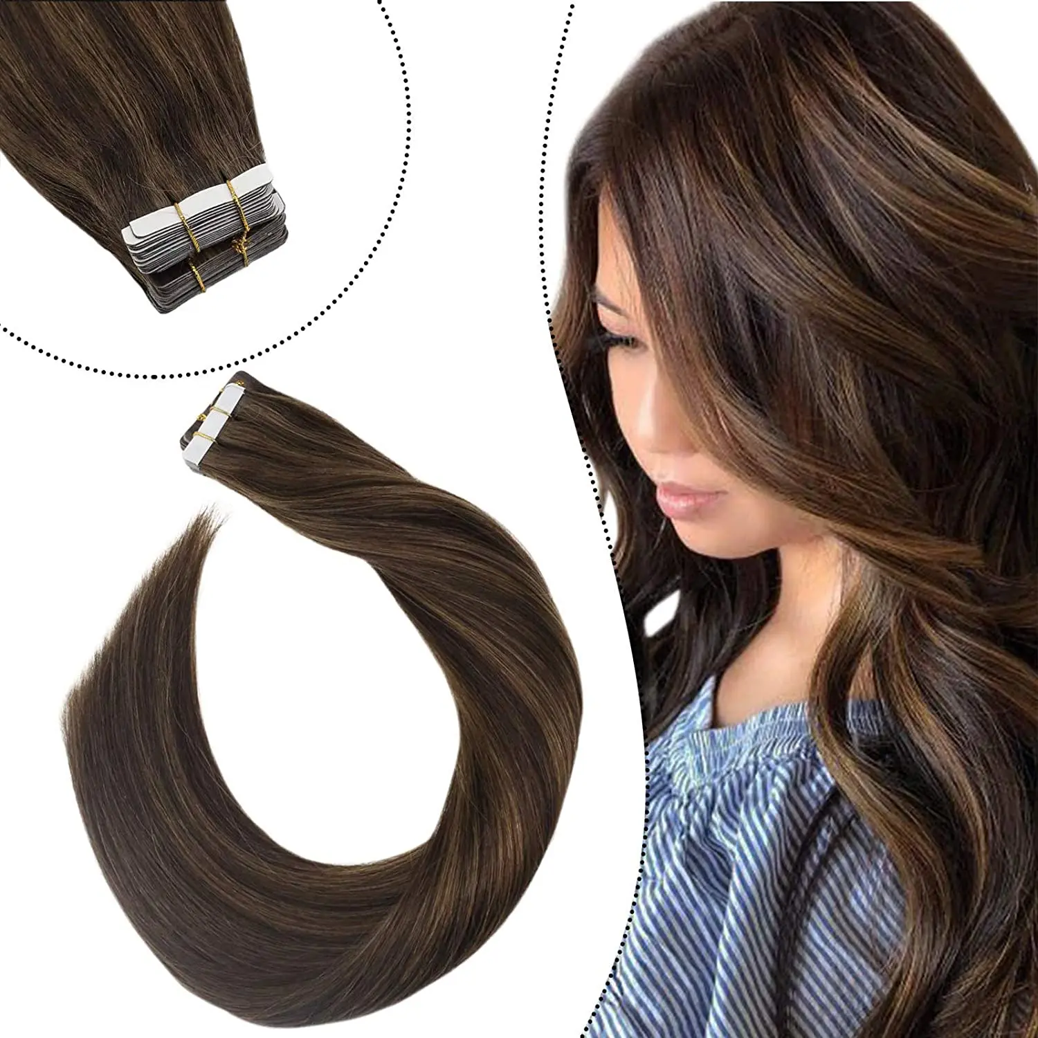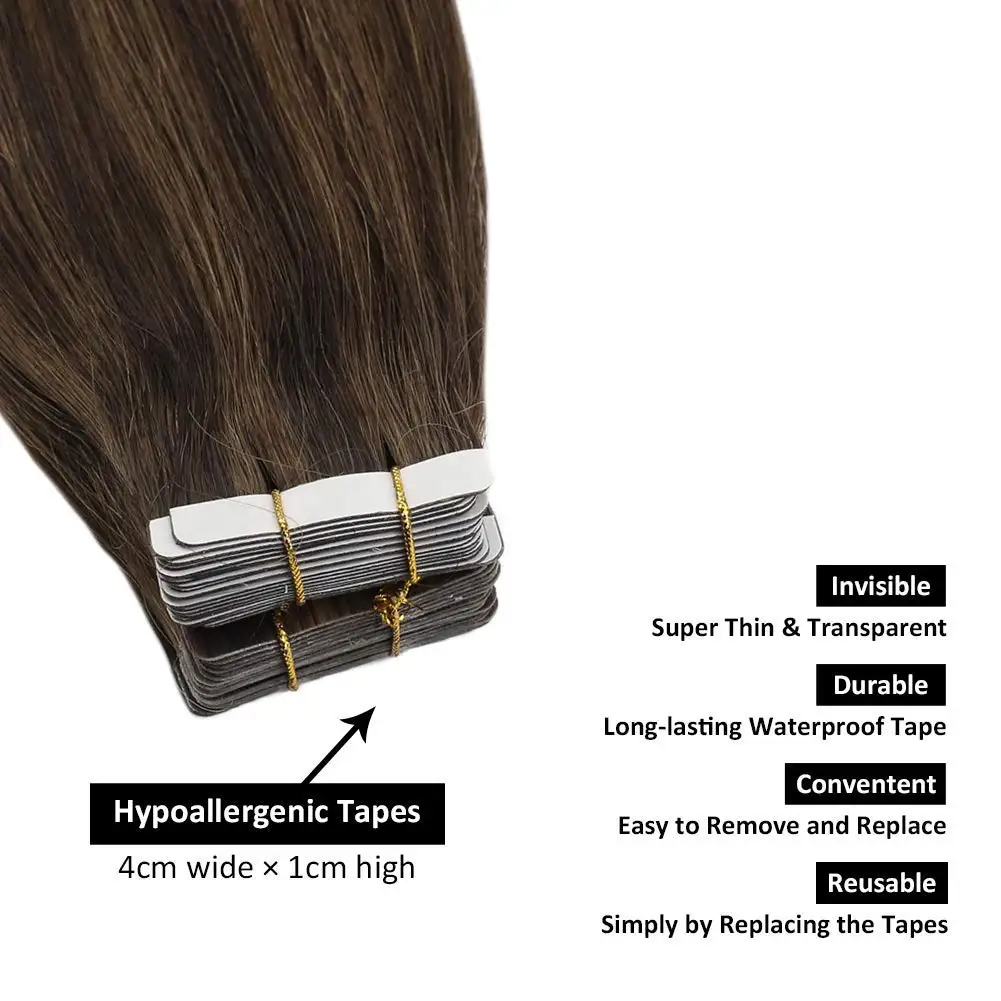 Ugeat лента для наращивания волос 12 дюймов Цвет #2 самая темная коричневая прядь 8 ясень коричневые бесшовные волосы Remy Двусторонняя лента в волосах