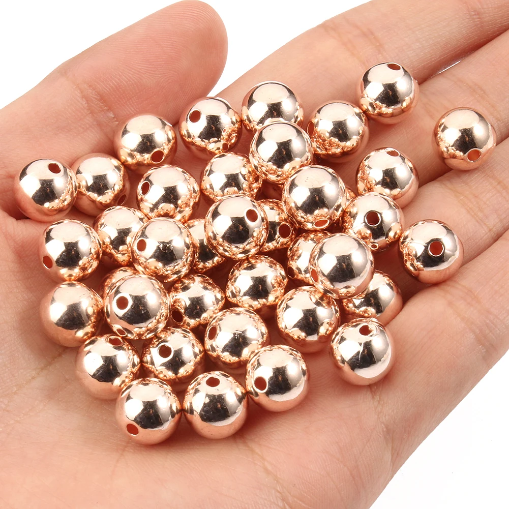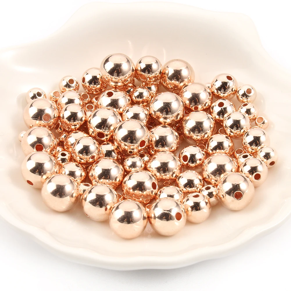 Оптовая продажа 3 4 6 8 10 12 мм 30-500 шт покрытые розовым золотом CCB Круглые бусины для самостоятельного изготовления ювелирных изделий