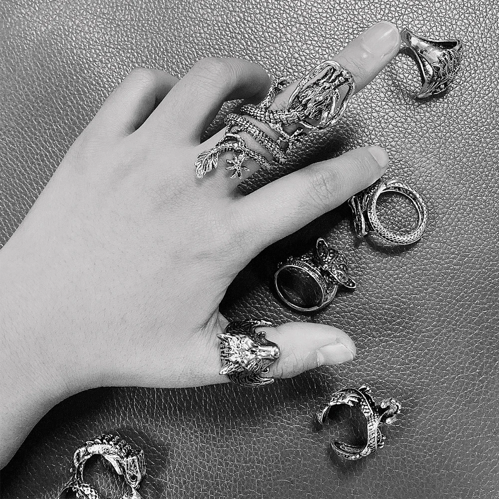 Мужское кольцо в стиле панк, Винтажное кольцо из нержавеющей стали с изображением дракона и черепа в стиле ретро, кольцо в готическом стиле, украшение в стиле хип-хоп для мужчин