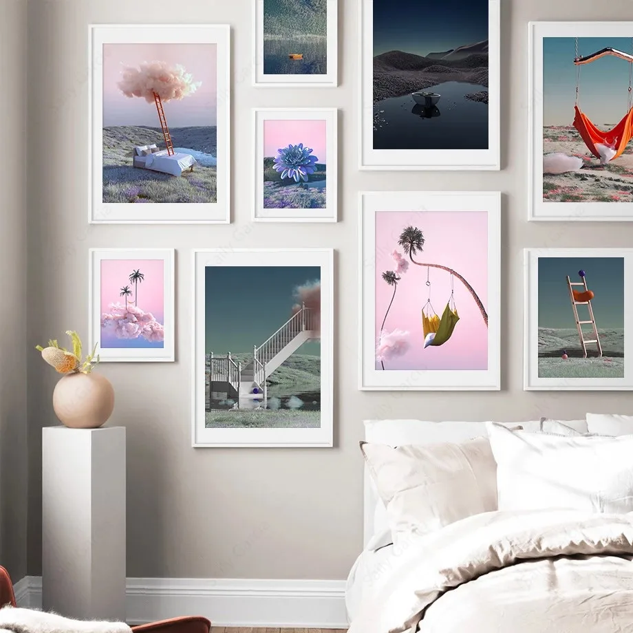 Абстрактный сюрреалистичный пейзаж, плакат и принты, настенная Картина на холсте, креативные картины в скандинавском стиле для гостиной, интерьерный Декор