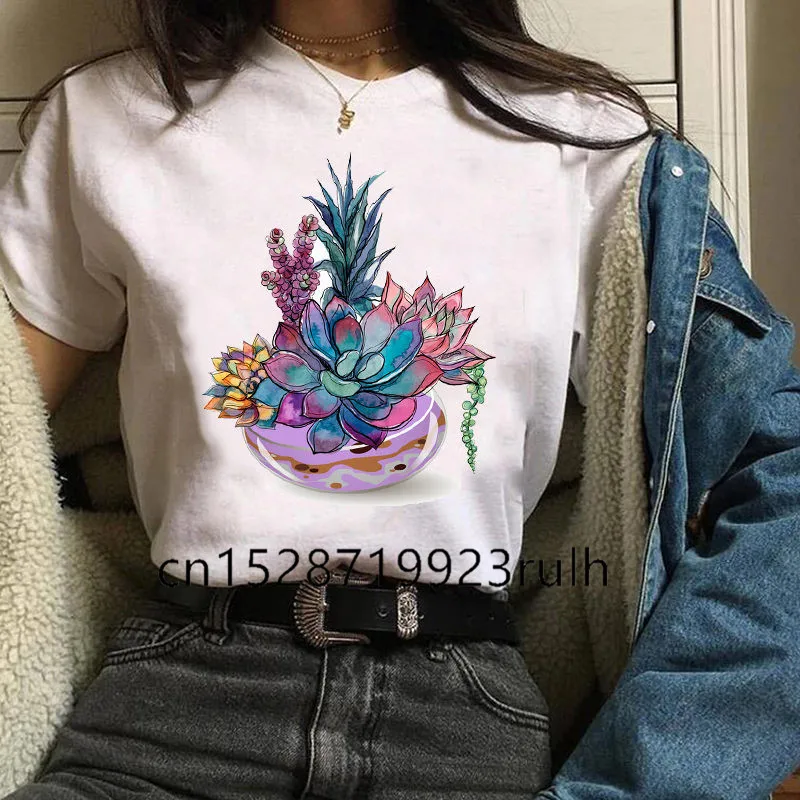 Женская футболка с коротким рукавом, Цветочная комбинация, в Корейс...
